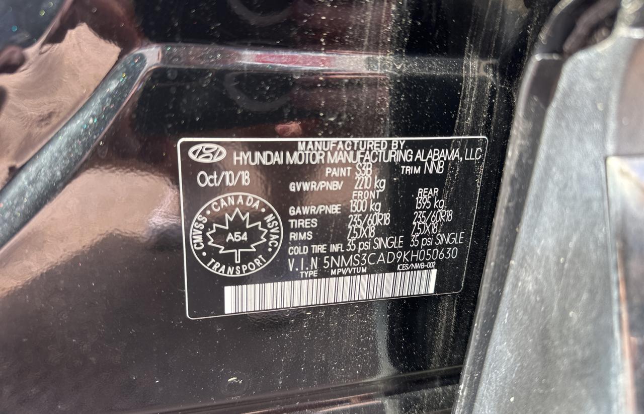 2019 HYUNDAI SANTA FE - 5NMS3CAD9KH050630, колір - Чорний, 2.4, Бензин, Повний привід із США