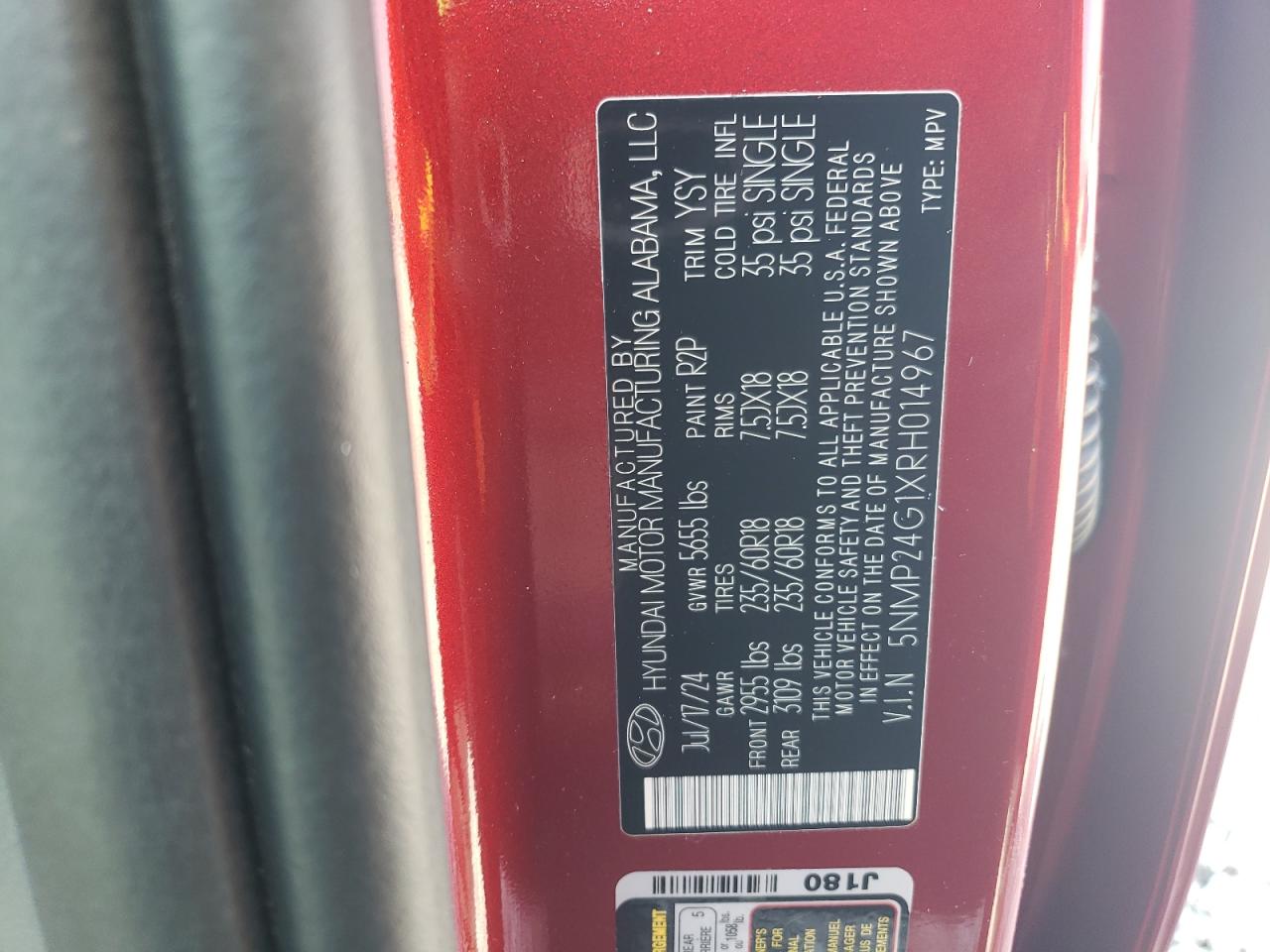 2024 HYUNDAI SANTA FE - 5NMP24G1XRH014967, колір - Червоний, 1.6, Гібрид, із США