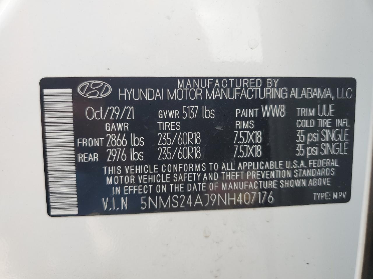 Колір БілийЦиліндри 4VIN 5NMS24AJ9NH407176Стан Заводиться та їде (перевірено)Ушкодження Передня або задняДата аукціона 2025-10-09