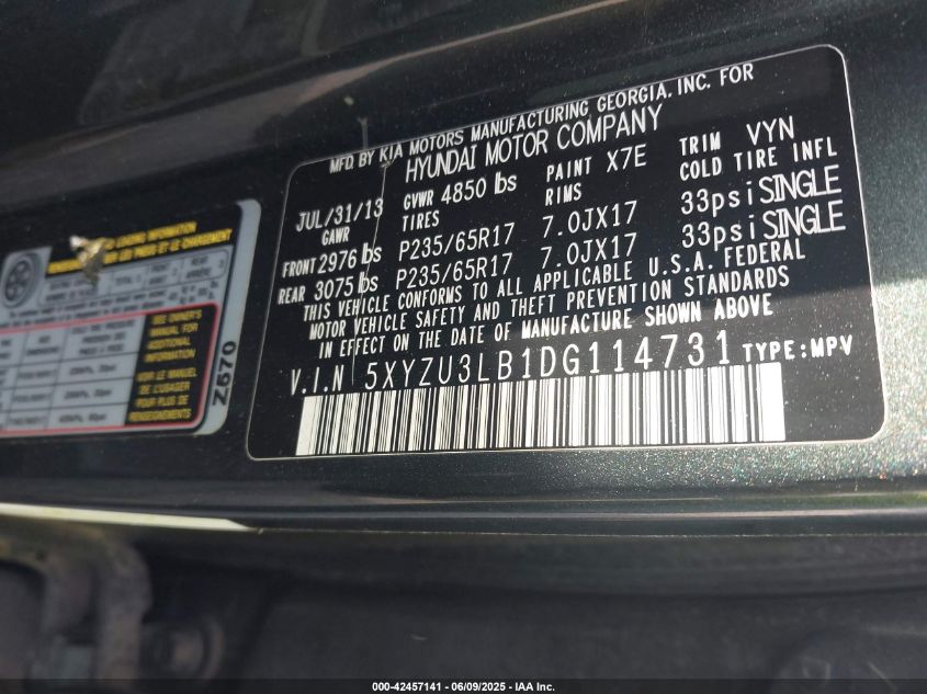 2013 HYUNDAI SANTA FE - 5XYZU3LB1DG114731, колір - Сірий, 2.4, Бензин, Передній привід із США