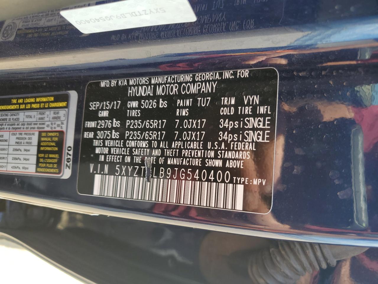 2018 HYUNDAI SANTA FE - 5XYZTDLB9JG540400, колір - Синій, 2.4, Бензин, Повний привід із США