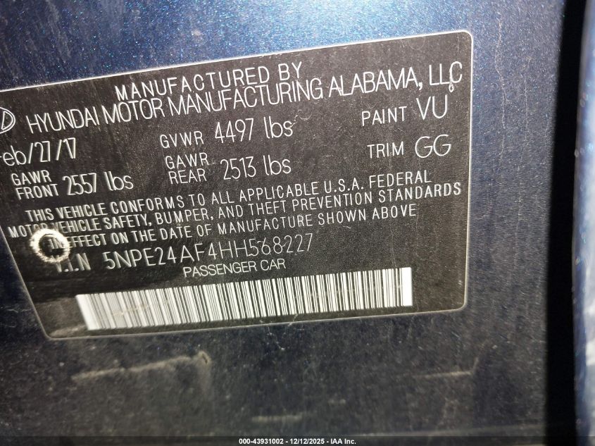 2017 HYUNDAI SONATA SE