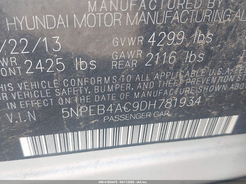 2013 HYUNDAI SONATA - 5NPEB4AC9DH781934, колір - Срібний, 2.4, Бензин, Передній привід із США