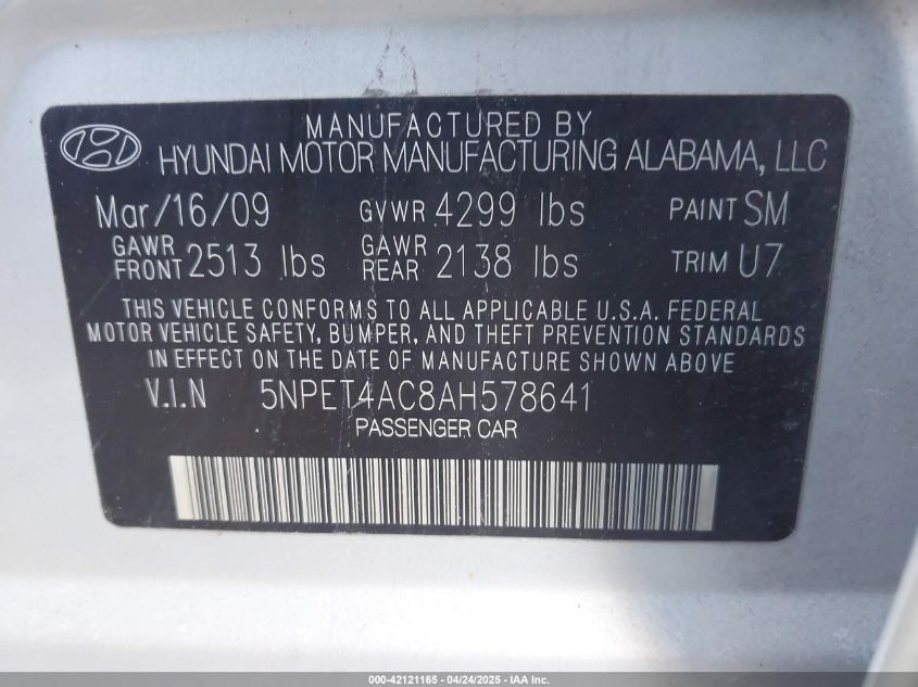 2010 HYUNDAI SONATA - 5NPET4AC8AH578641, колір - Срібний, 2.4, Бензин, Передній привід із США