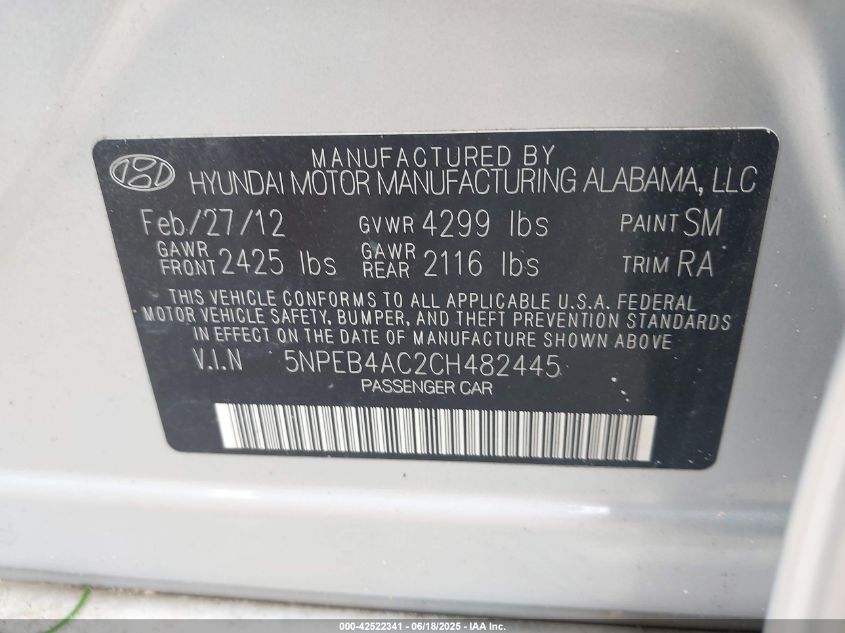2012 HYUNDAI SONATA - 5NPEB4AC2CH482445, колір - Срібний, 2.4, Бензин, Передній привід із США