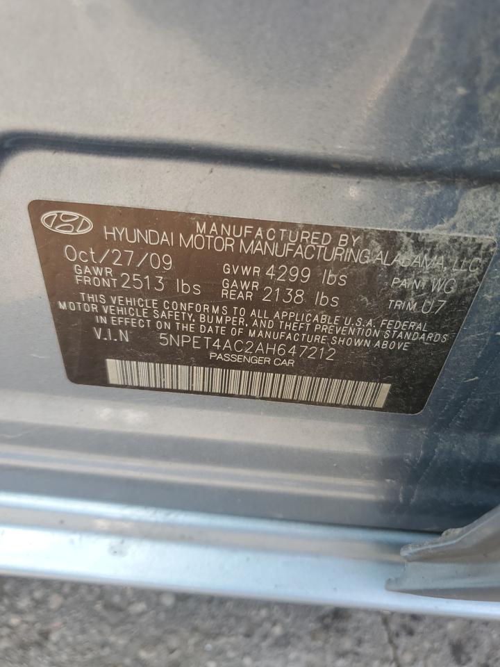 2010 HYUNDAI SONATA - 5NPET4AC2AH647212, колір - Синій, 2.4, Бензин, із США