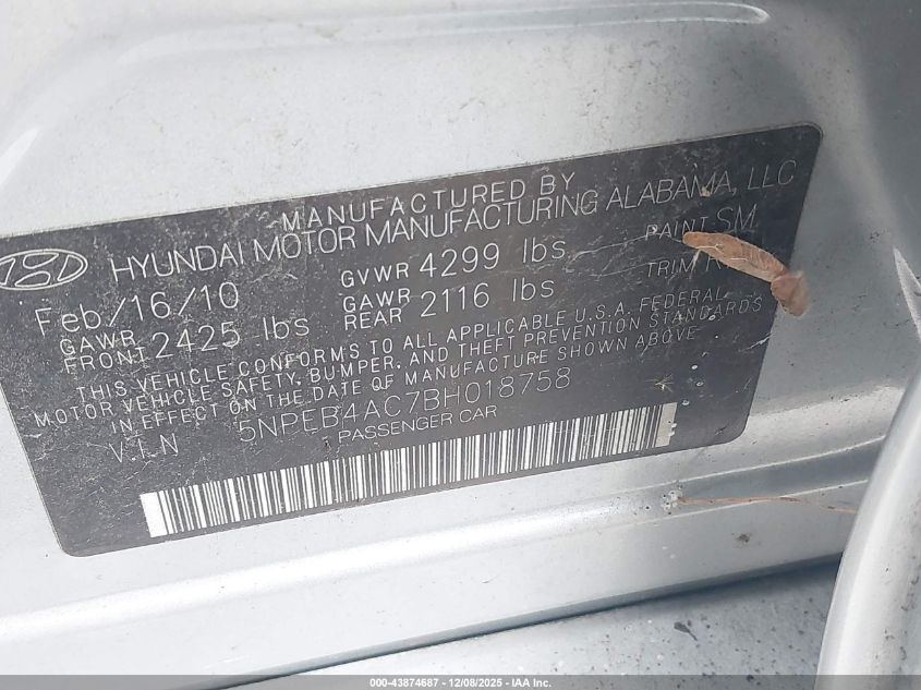 2011 HYUNDAI SONATA - 5NPEB4AC7BH018758, колір - Срібний, 2.4, Бензин, Передній привід із США