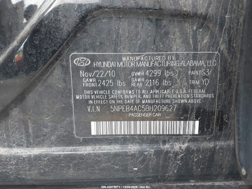 2011 HYUNDAI SONATA - 5NPEB4AC5BH209627, колір - Чорний, 2.4, Бензин, Передній привід із США