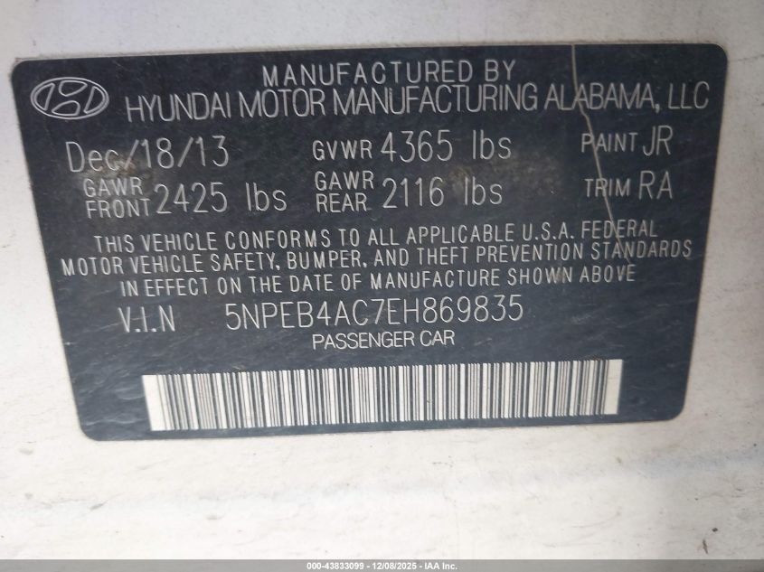 Колір БілийЦиліндри 4Привід Передній привідVIN 5NPEB4AC7EH869835Стан Заводиться та їде (перевірено)Ушкодження Права сторона
