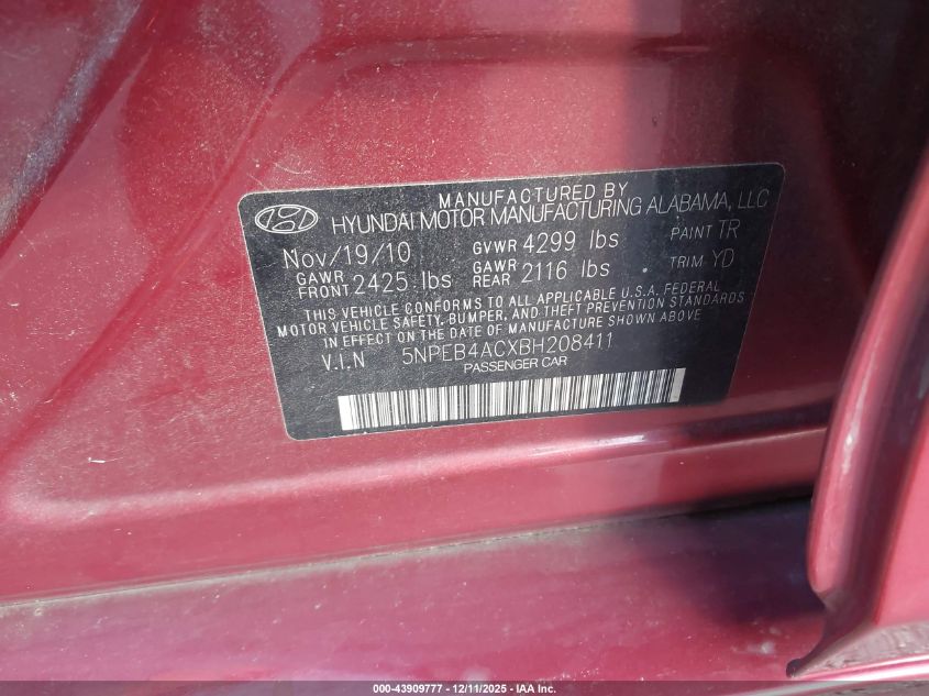 2011 HYUNDAI SONATA - 5NPEB4ACXBH208411, колір - Червоний, 2.4, Бензин, Передній привід із США