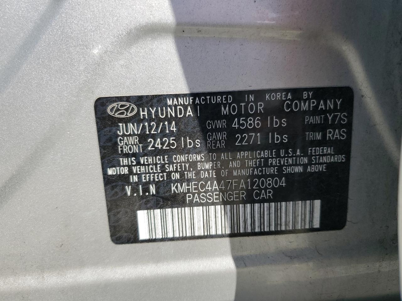 2015 HYUNDAI SONATA - KMHEC4A47FA120804, колір - Срібний, 2.4, Гібрид, із США