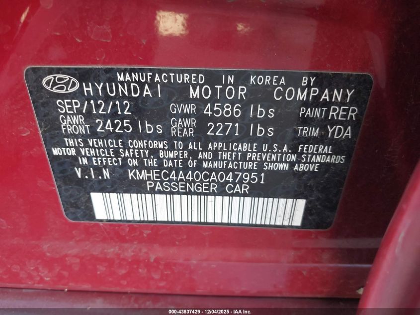 2012 HYUNDAI SONATA - KMHEC4A40CA047951, колір - Червоний, 2.4, Гібрид, Передній привід із США