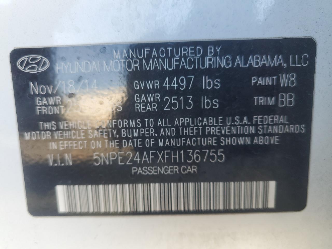 2015 HYUNDAI SONATA - 5NPE24AFXFH136755, колір - Білий, 2.4, Бензин, із США