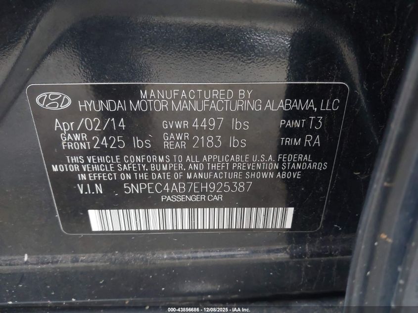 2014 HYUNDAI SONATA - 5NPEC4AB7EH925387, колір - Синій, 2.0, Бензин, Передній привід із США