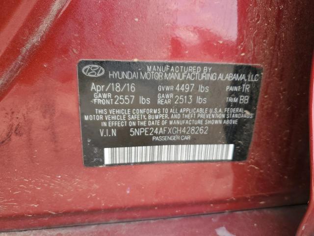 2016 HYUNDAI SONATA - 5NPE24AFXGH428262, колір - Червоний, 2.4, Бензин, із США
