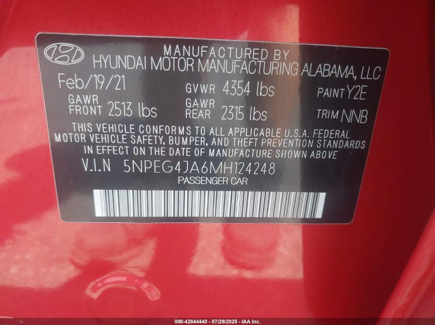 2021 HYUNDAI SONATA - 5NPEG4JA6MH124248, колір - Червоний, 2.5, Бензин, Передній привід із США