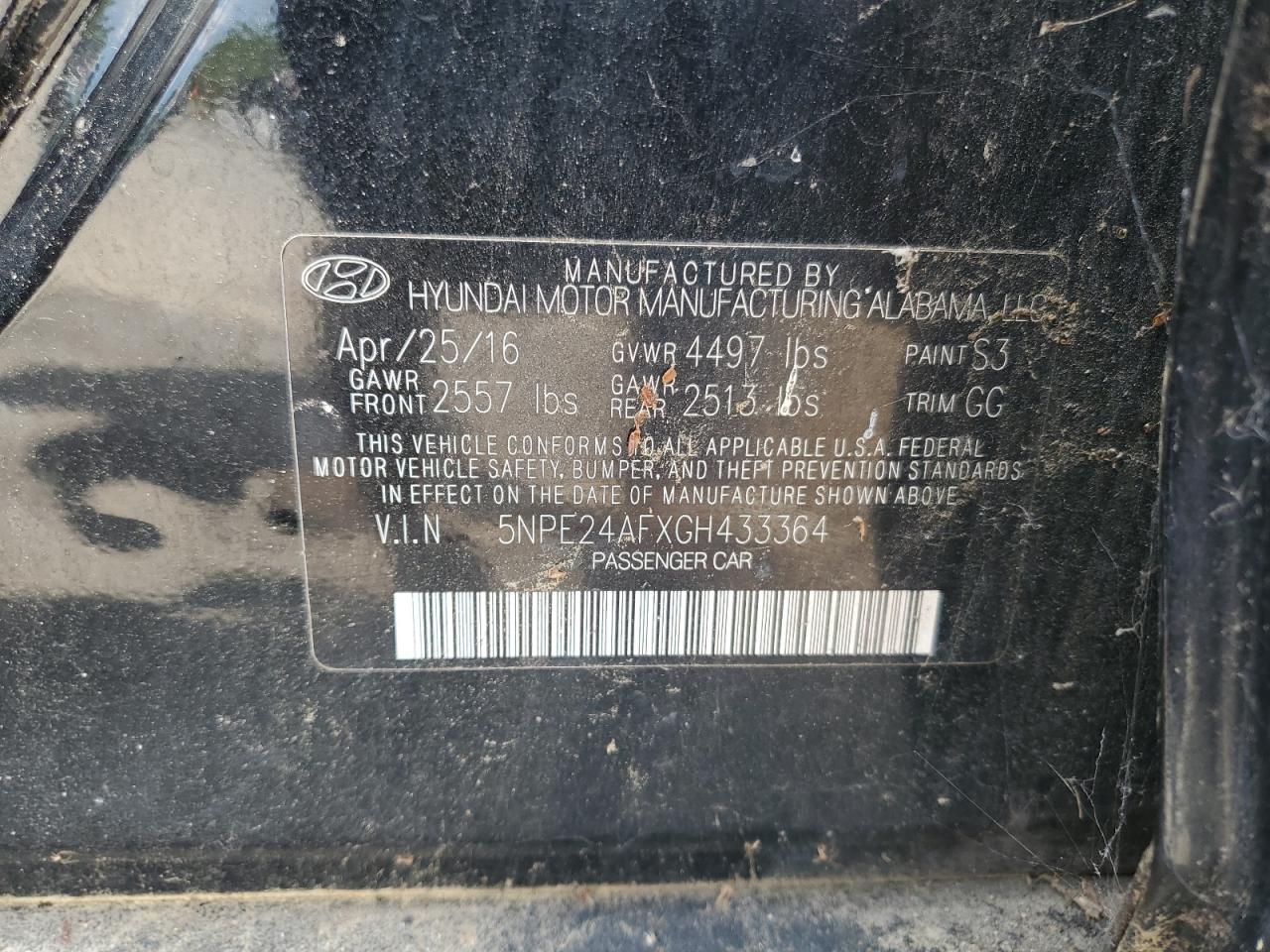 2016 HYUNDAI SONATA - 5NPE24AFXGH433364, колір - Чорний, 2.4, Бензин, із США