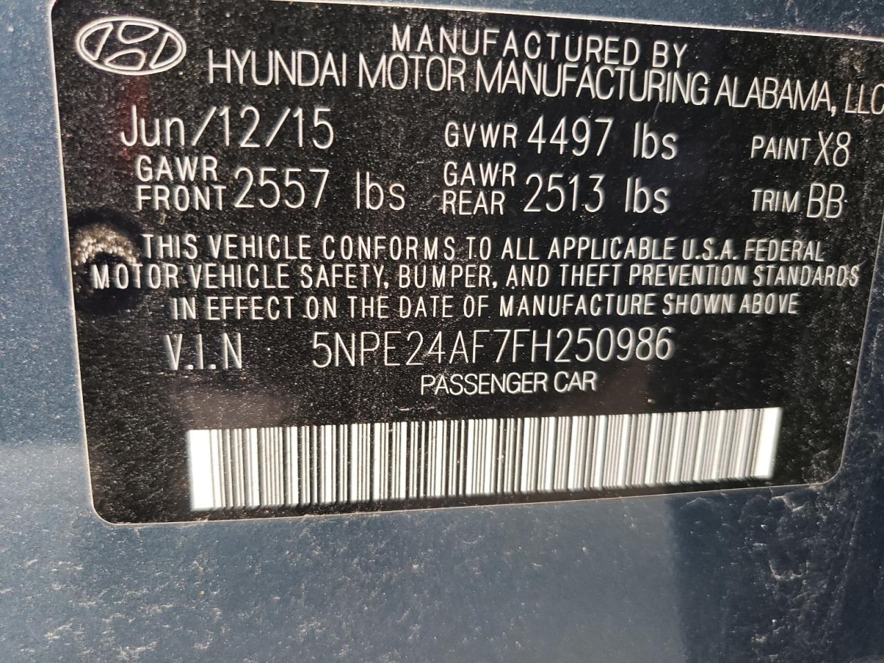 Колір БірюзовийЦиліндри 4VIN 5NPE24AF7FH250986Стан Заводиться та їде (перевірено)Ушкодження НезначніДата аукціона 2025-10-07