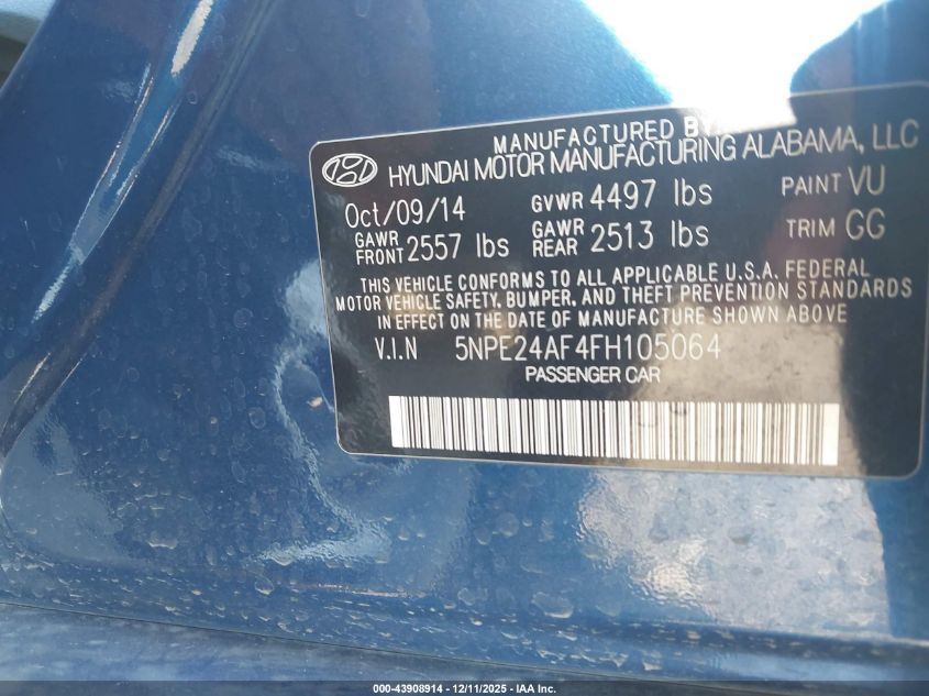 2015 HYUNDAI SONATA - 5NPE24AF4FH105064, колір - Синій, 2.4, Бензин, Передній привід із США
