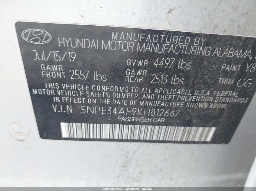 2019 HYUNDAI SONATA - 5NPE34AF9KH812667, колір - Срібний, 2.4, Бензин, Передній привід із США