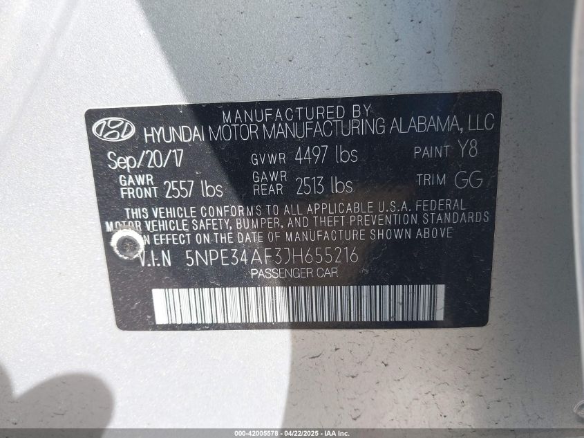 2018 HYUNDAI SONATA - 5NPE34AF3JH655216, колір - Срібний, 2.4, Бензин, Передній привід із США