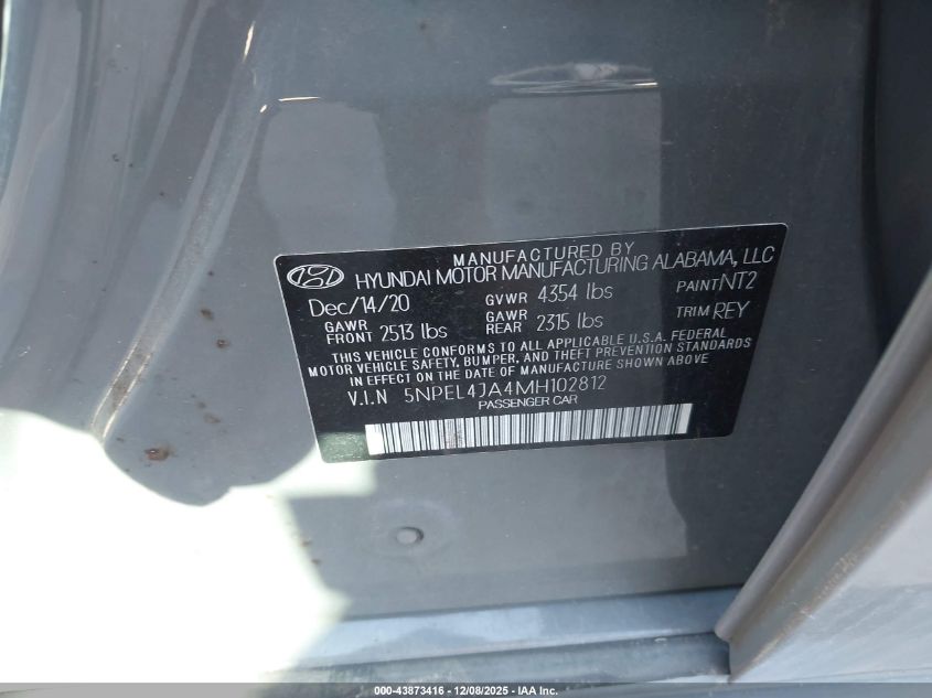 2021 HYUNDAI SONATA - 5NPEL4JA4MH102812, колір - Сірий, 2.5, Бензин, Передній привід із США