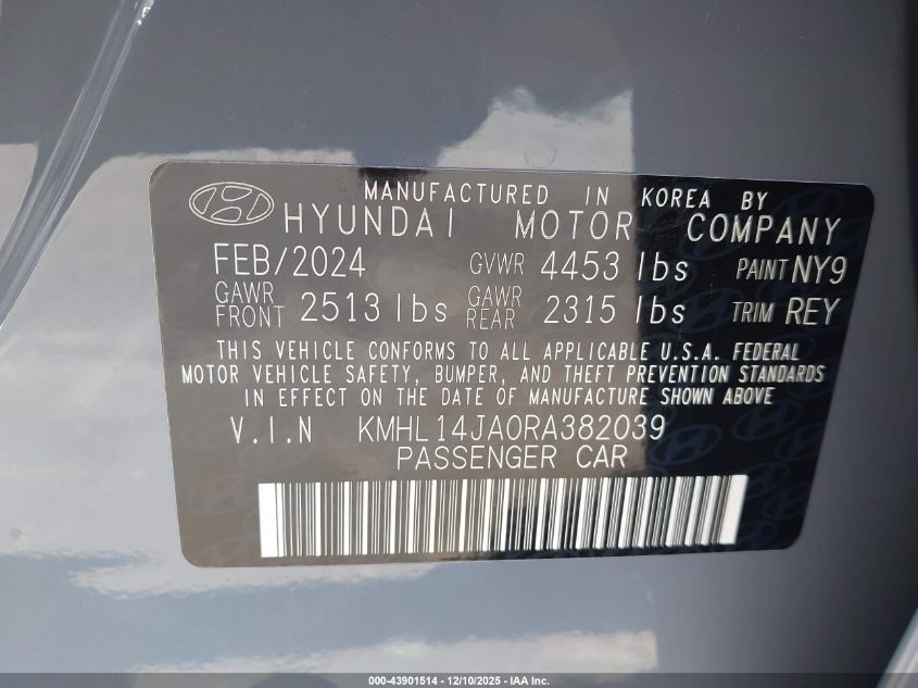 2024 HYUNDAI SONATA - KMHL14JA0RA382039, колір - Сірий, 2.5, Бензин, Передній привід із США