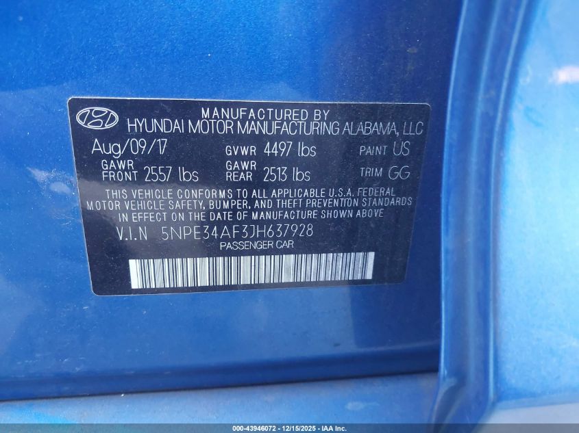 2018 HYUNDAI SONATA - 5NPE34AF3JH637928, колір - Синій, 2.4, Бензин, Передній привід із США