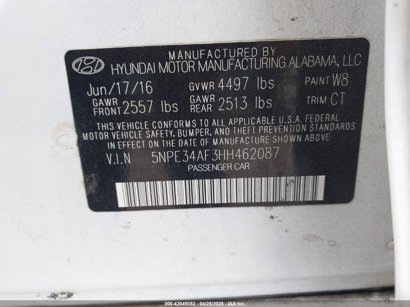 2017 HYUNDAI SONATA - 5NPE34AF3HH462087, колір - Білий, 2.4, Бензин, Передній привід із США