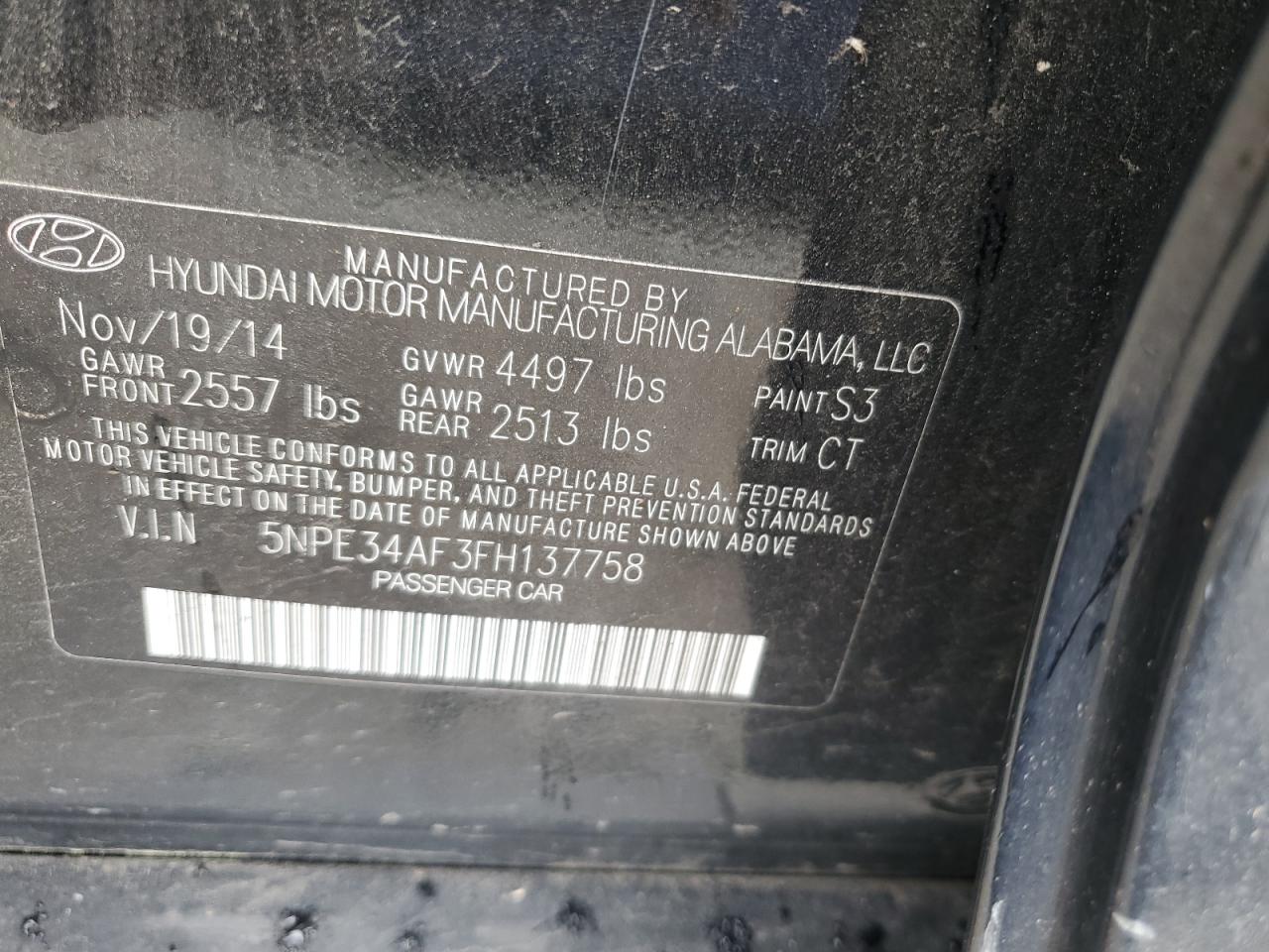 2015 HYUNDAI SONATA - 5NPE34AF3FH137758, колір - Чорний, 2.4, Бензин, із США