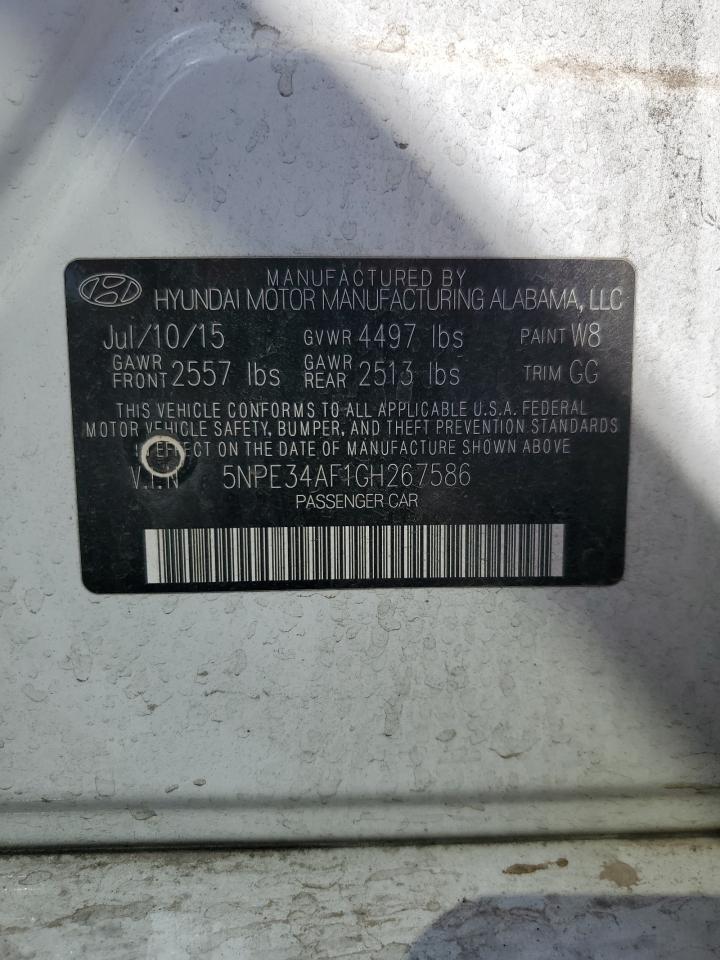 2016 HYUNDAI SONATA - 5NPE34AF1GH267586, колір - Білий, 2.4, Бензин, із США