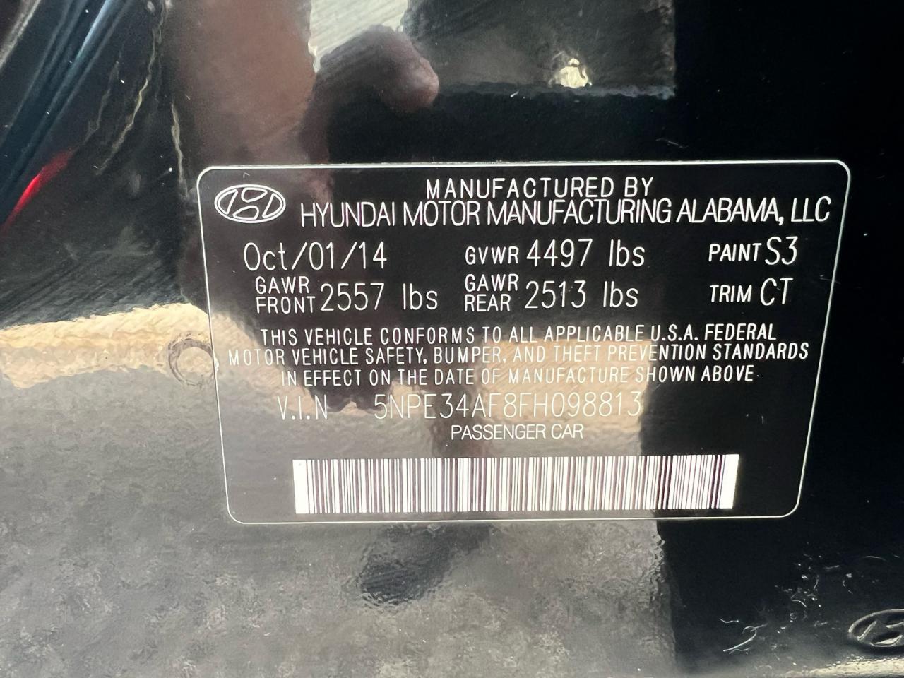 2015 HYUNDAI SONATA - 5NPE34AF8FH098813, колір - Чорний, 2.4, Бензин, із США
