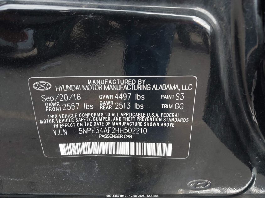2017 HYUNDAI SONATA - 5NPE34AF2HH502210, колір - Чорний, 2.4, Бензин, Передній привід із США