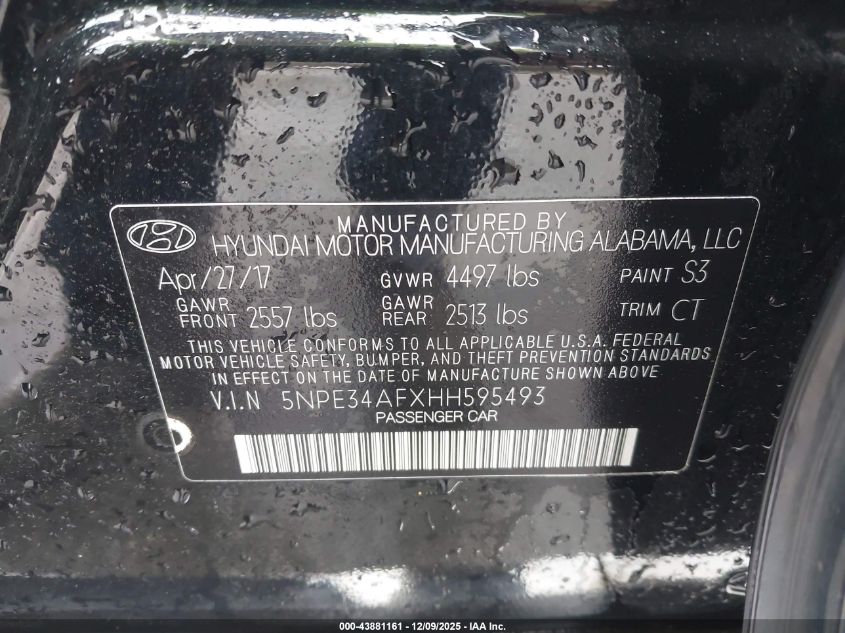 2017 HYUNDAI SONATA - 5NPE34AFXHH595493, колір - Чорний, 2.4, Бензин, Передній привід із США
