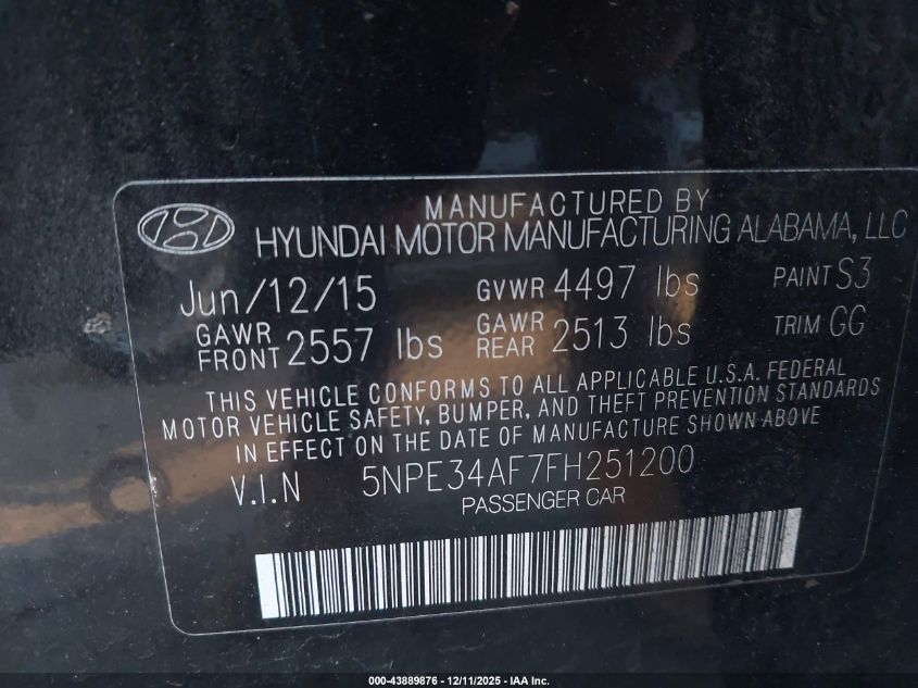 2015 HYUNDAI SONATA - 5NPE34AF7FH251200, колір - Чорний, 2.4, Бензин, Передній привід із США
