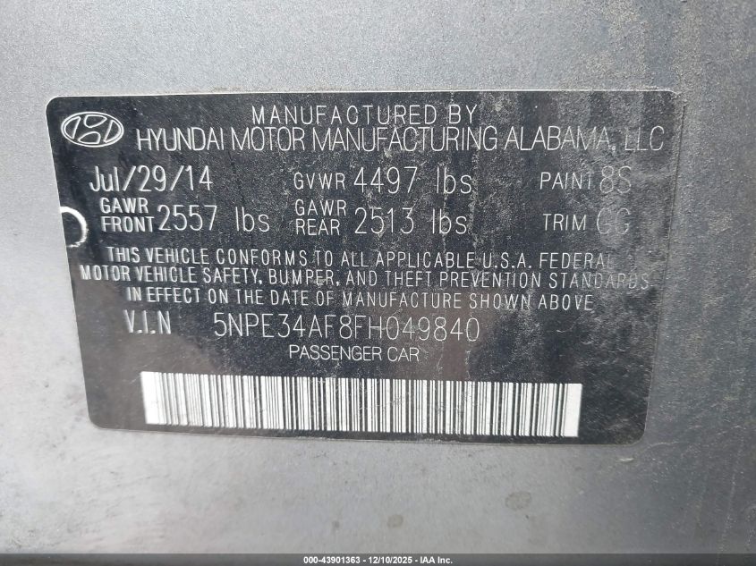 2015 HYUNDAI SONATA ECO