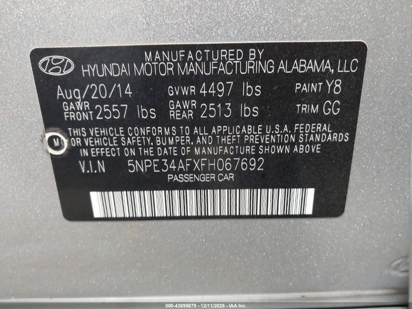 2015 HYUNDAI SONATA ECO