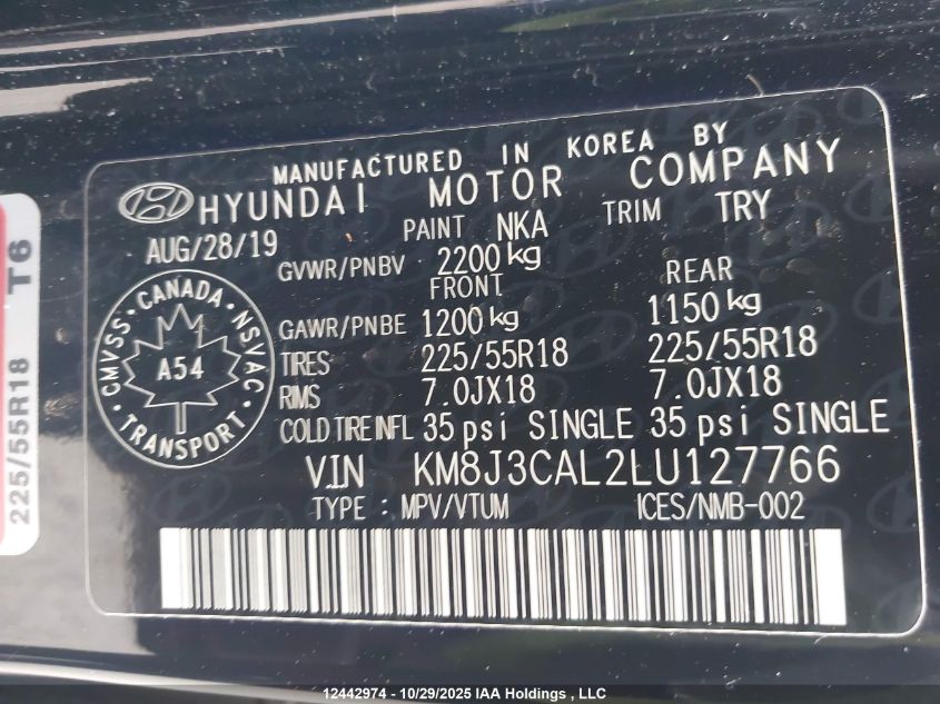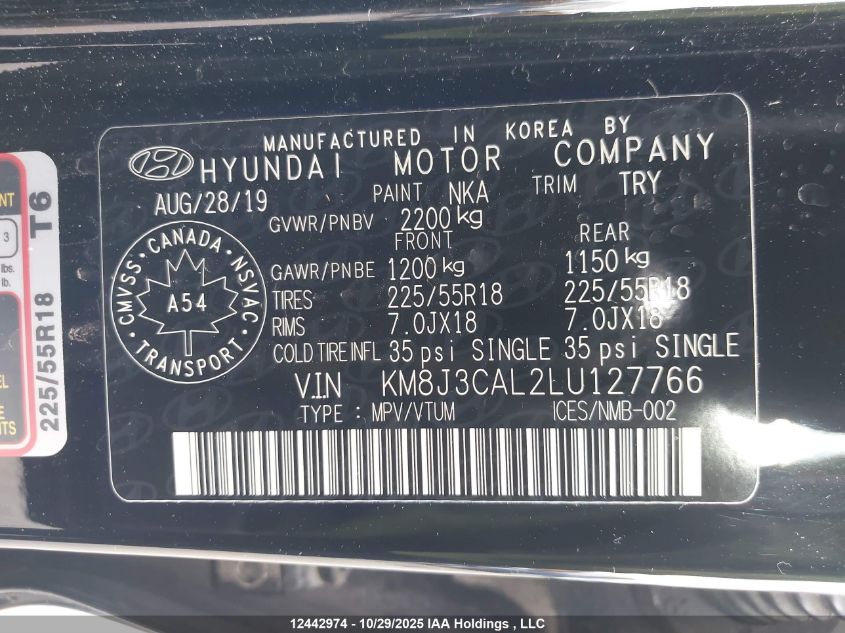 2020 HYUNDAI TUCSON - KM8J3CAL2LU127766, колір - Чорний, , Бензин, Повний привід із США