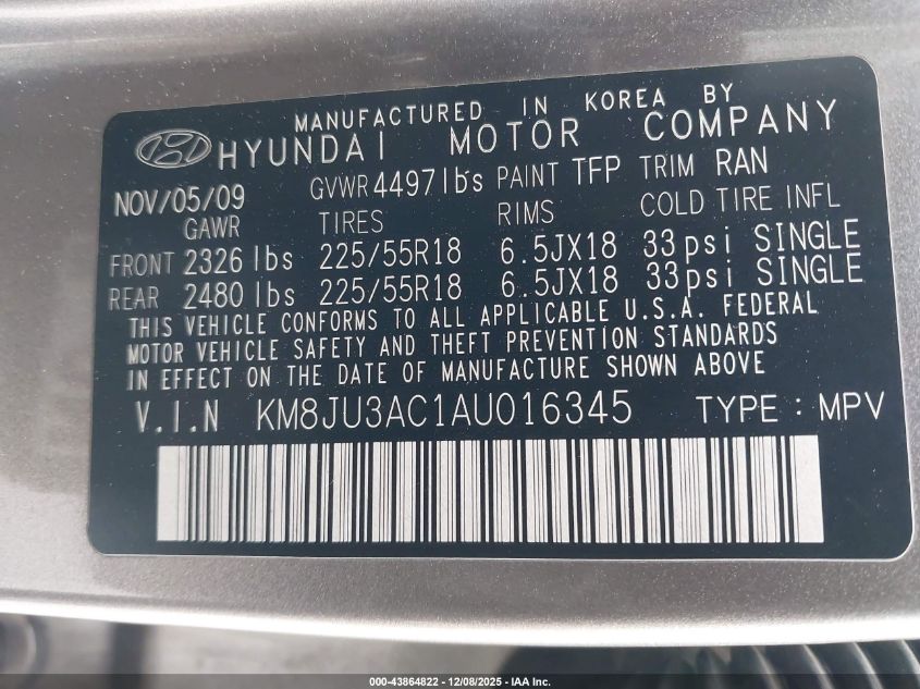 2010 HYUNDAI TUCSON GLS