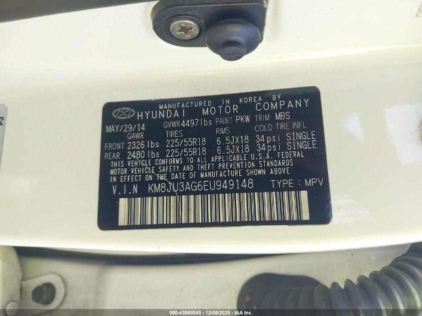 2014 HYUNDAI TUCSON - KM8JU3AG6EU949148, колір - Білий, 2.4, Бензин, Передній привід із США