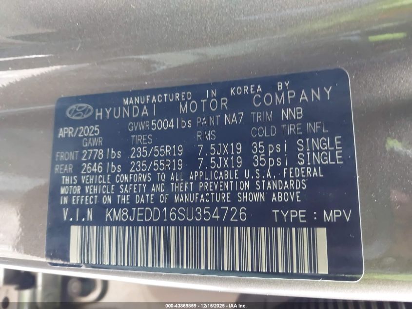 2025 HYUNDAI TUCSON - KM8JEDD16SU354726, колір - Сірий, 1.6, Гібрид, Повний привід із США
