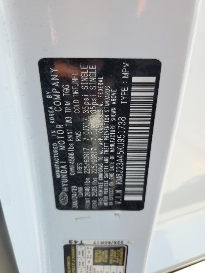 2019 HYUNDAI TUCSON - KM8J23A45KU951738, колір - Білий, 2.0, Бензин, із США