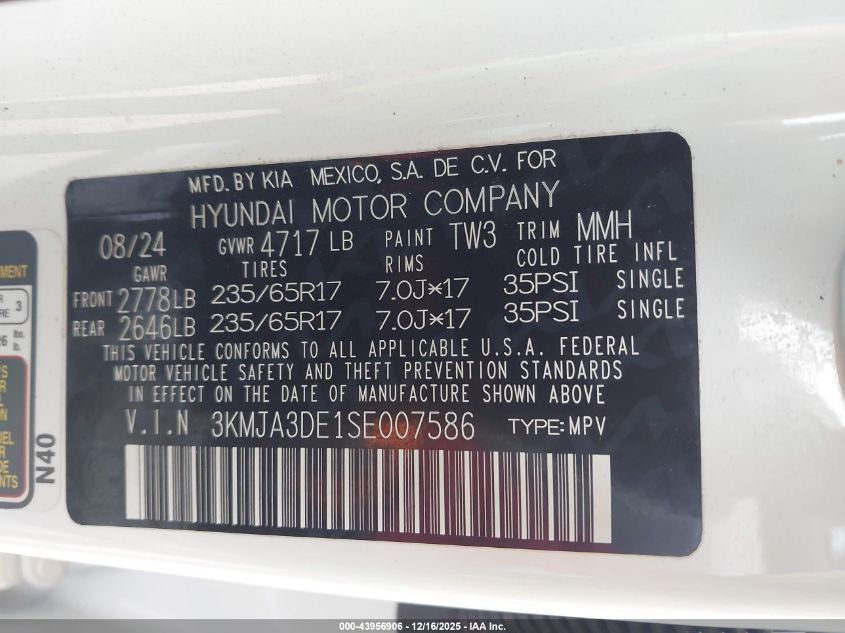 2025 HYUNDAI TUCSON - 3KMJA3DE1SE007586, колір - Білий, 2.5, Бензин, Передній привід із США