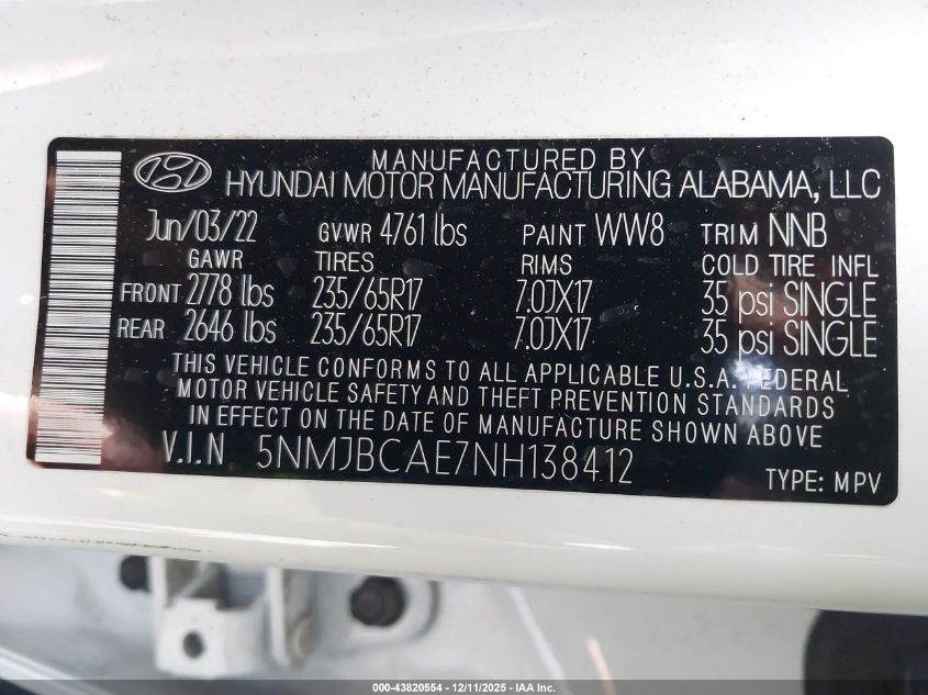 Колір БілийЦиліндри 4Привід Повний привідVIN 5NMJBCAE7NH138412Стан СтаціонарноУшкодження Передня права