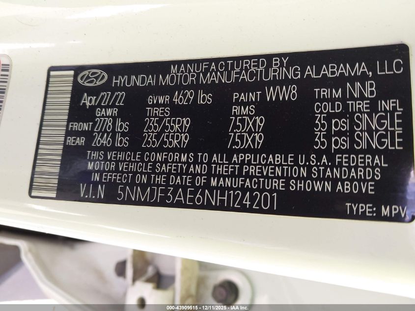 2022 HYUNDAI TUCSON - 5NMJF3AE6NH124201, колір - Білий, 2.5, Бензин, Передній привід із США
