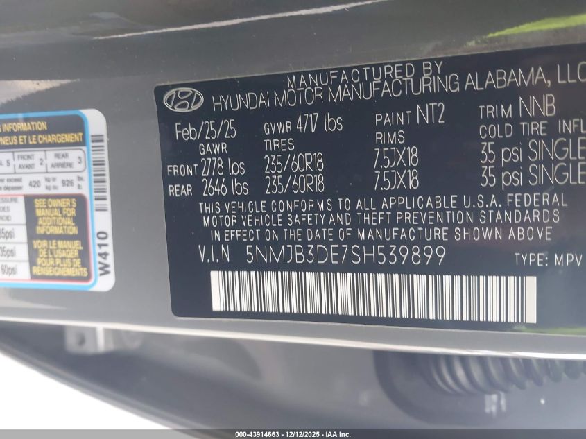 2025 HYUNDAI TUCSON - 5NMJB3DE7SH539899, колір - Сірий, 2.5, Бензин, Передній привід із США