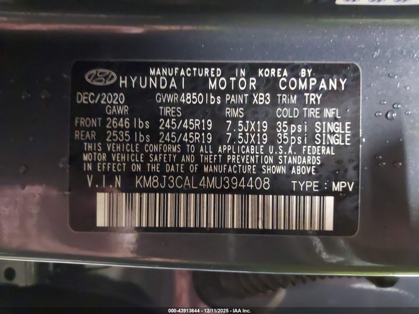 Колір СинійЦиліндри 4Привід Повний привідVIN KM8J3CAL4MU394408Стан Заводиться та їде (перевірено)Ушкодження Передня або задня