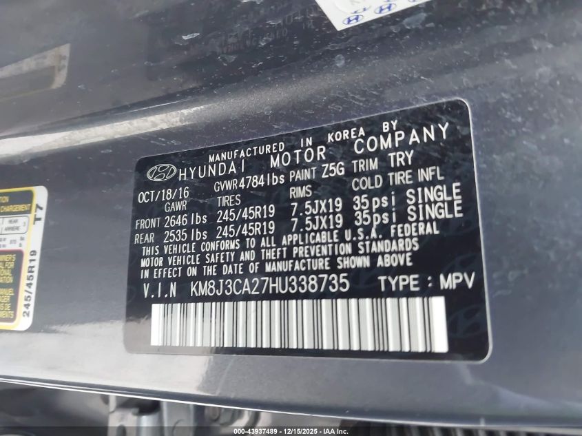 2017 HYUNDAI TUCSON - KM8J3CA27HU338735, колір - , 1.6, Бензин, Повний привід із США