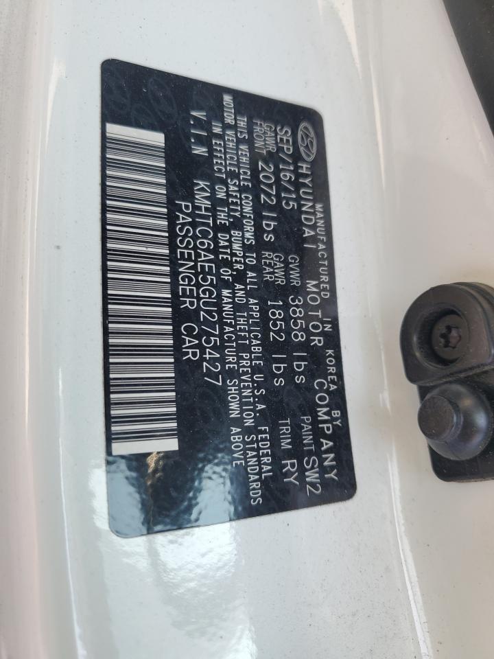 2016 HYUNDAI VELOSTER - KMHTC6AE5GU275427, колір - Білий, 1.6, Бензин, із США
