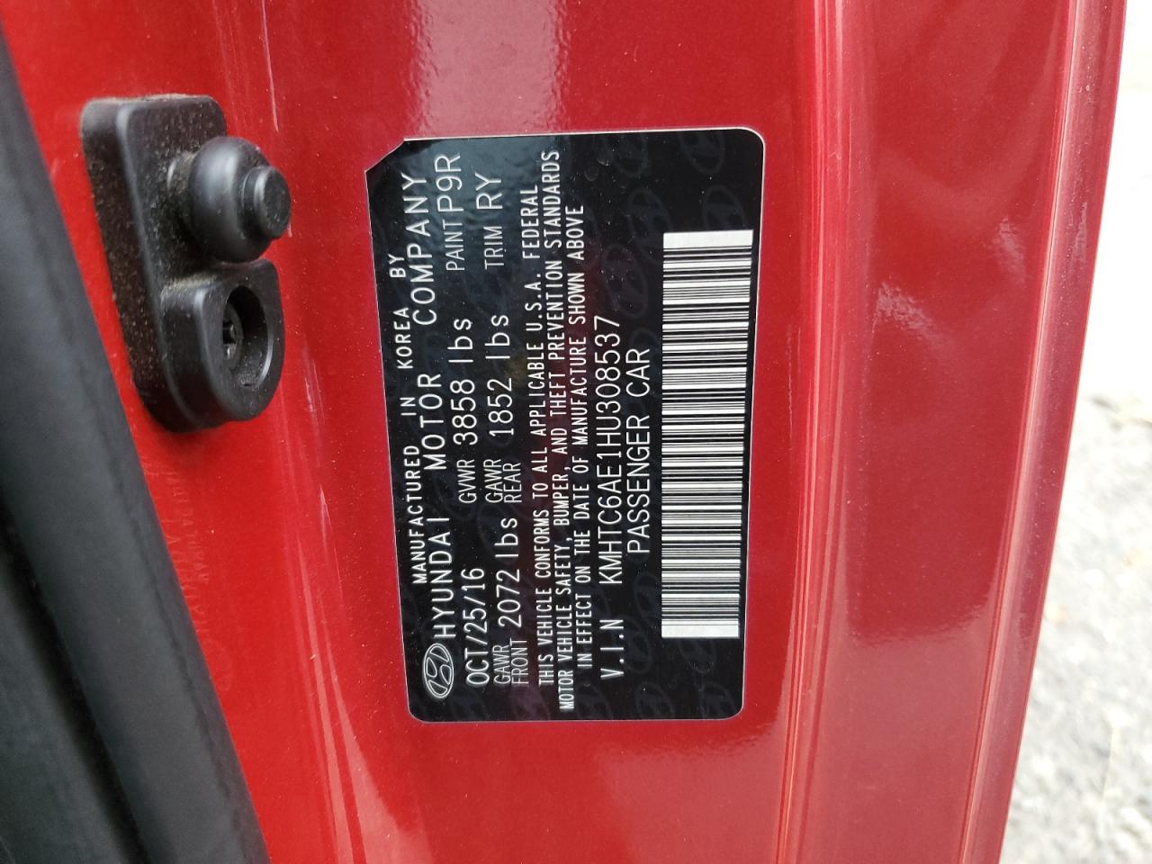 2017 HYUNDAI VELOSTER - KMHTC6AE1HU308537, колір - Червоний, 1.6, Бензин, із США